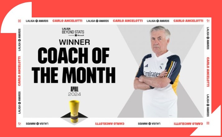 这也是在八月份之后,安切洛蒂本赛季再次获得这一奖项,这次他击败的是贝蒂斯主帅佩莱格里尼和塞维利亚主帅弗洛雷斯。