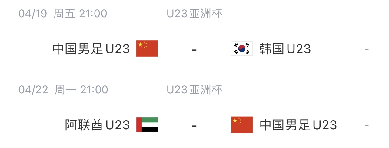 04月16日讯 U23男足亚洲杯兼奥预赛B组首轮,中国国奥0-1不敌十人日本国奥。国奥小组赛剩余赛程如上。