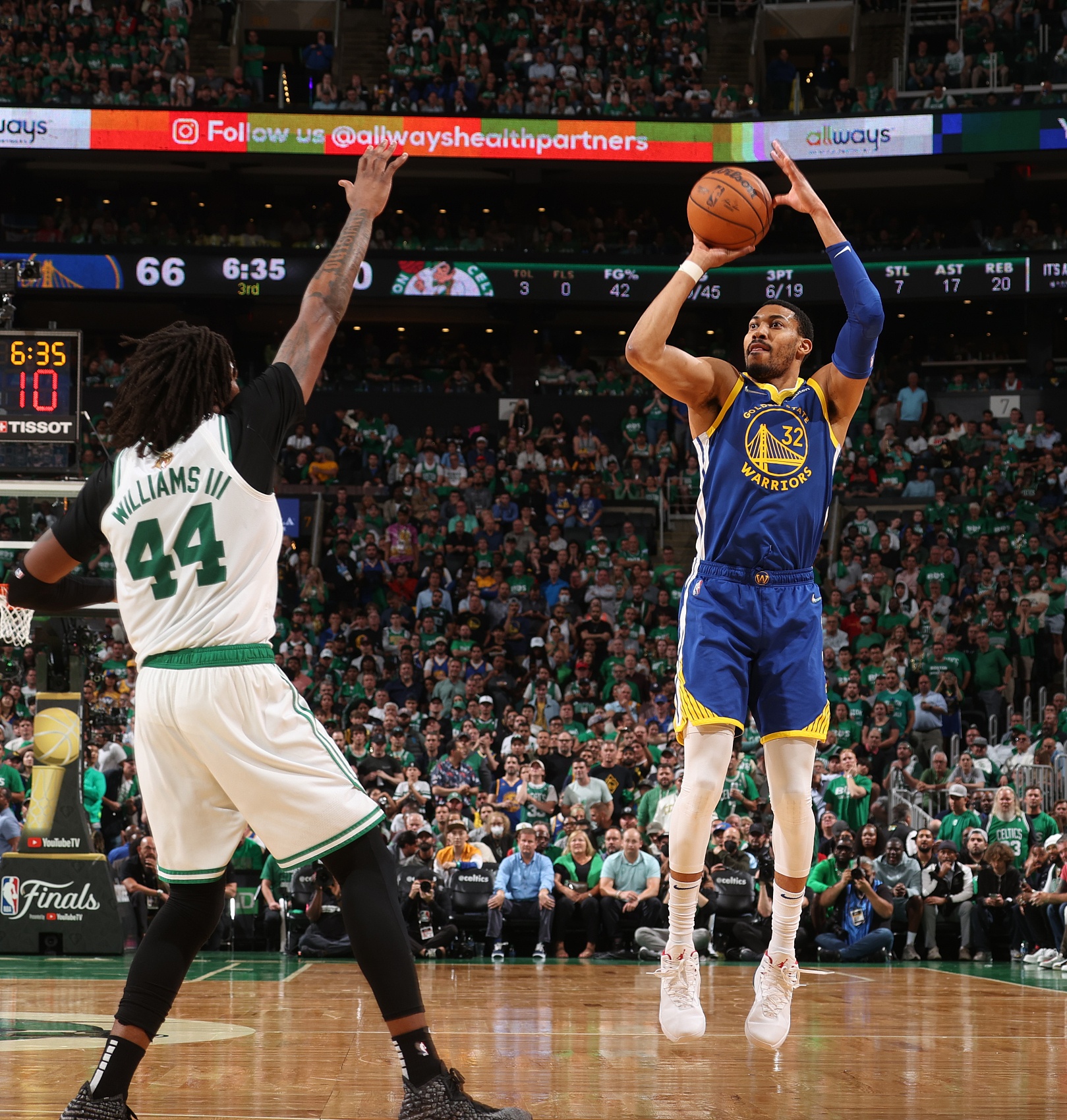 2022年的季后赛,波特场均能贡献5.4分3.4板1.8助0.9断,命中率49.4%、三分命中率40.4%。2021年夏天,波特底薪选择了勇士,帮助勇士夺冠之后,2年1230万签约了猛龙。