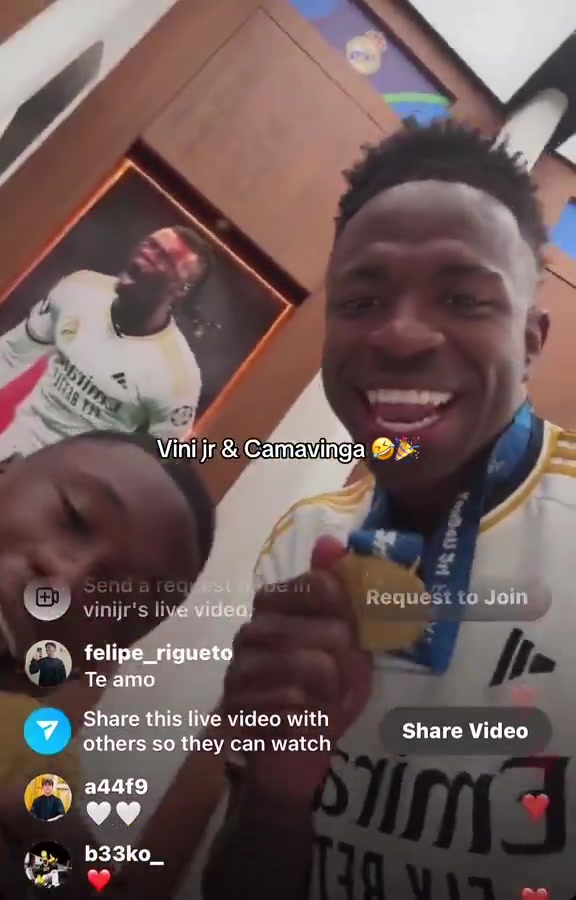 冠军奖牌长这样!维尼修斯、卡马文加开直播秀奖牌+唱歌