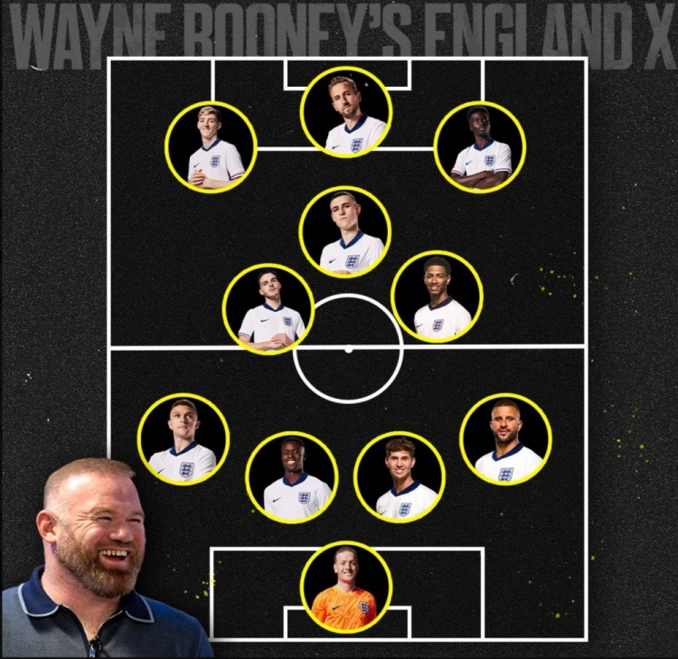 鲁尼列英格兰队首发:贝林厄姆、赖斯在列,锋线凯恩+萨卡+戈登