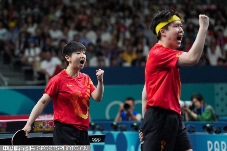 7月30日宣 巴黎奥运会乒乓球混双决赛,中国队孙颖莎、王楚钦击败朝鲜队的李正植、金琴英,夺得冠军。