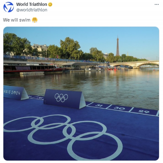 世界铁人三项联盟官方今日晒出塞纳河边的图,并配文:我们要游了