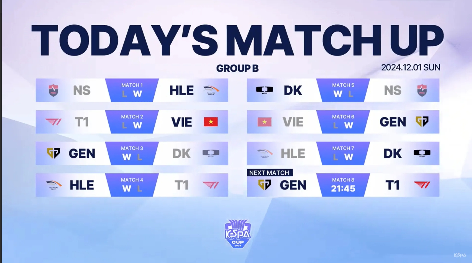 目前GEN以3胜0负排在第一,DK、HLE则以2胜1负并列第二,越南队1胜1负排在第四。NS和T1则难求一胜排名垫底。值得一提的是T1的Oner和Gumayusi仅登场了对阵越南队的比赛。