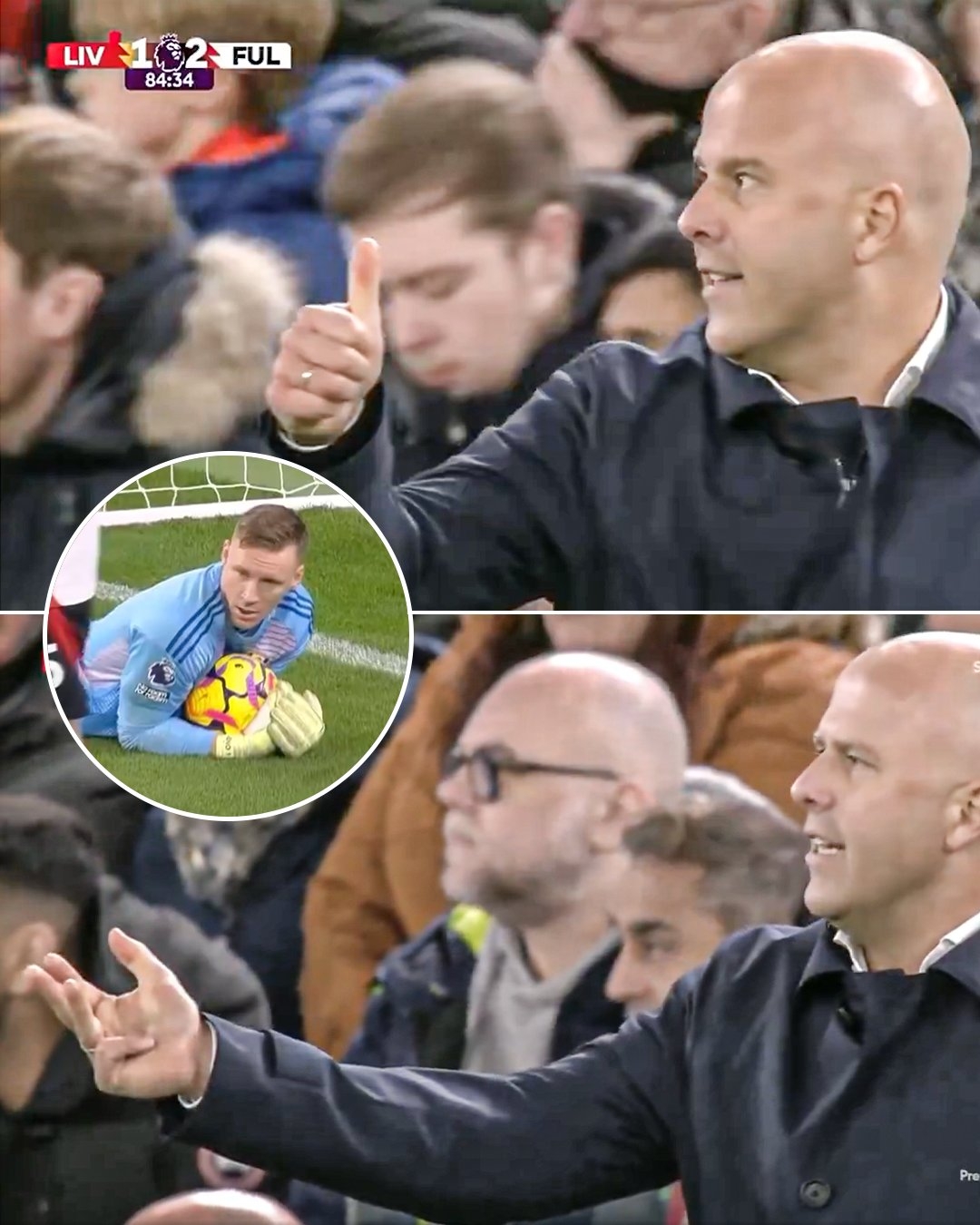 12月15日宣 英超第16轮利物浦2-2富勒姆。本场比赛第85分钟莱诺在禁区内抱球拖延时间,场边的利物浦主帅斯洛特表示不满,数着手指暗示莱诺已经超时。