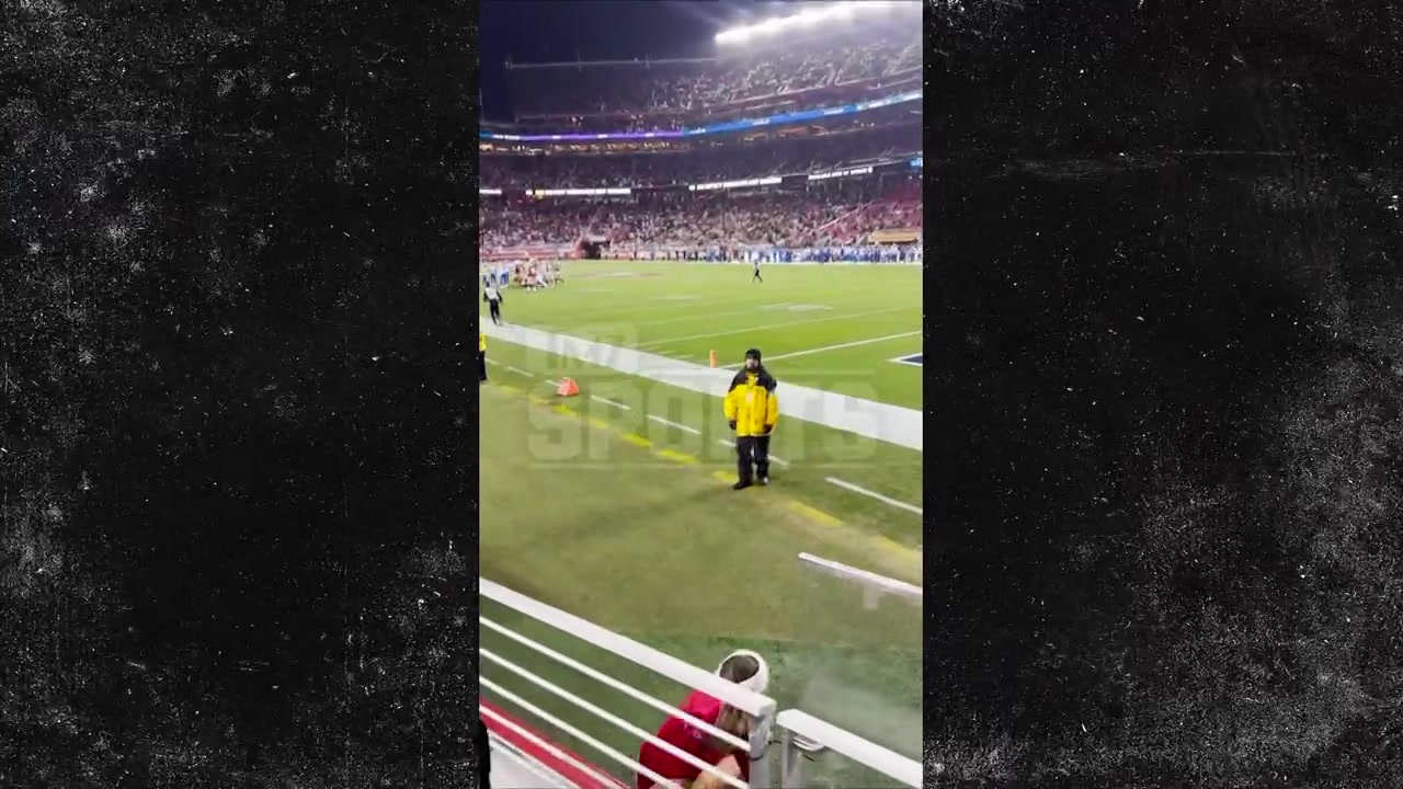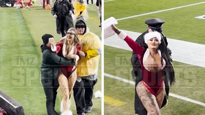 TMZ了解道,这两名女子名叫Toochi Kash和Amber Ghini,前几天还冲进了NFL(橄榄球)49人vs公羊的赛场。在NFL赛场,其中一名女子刻意掏出了“胸”器。