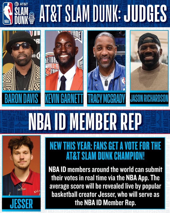 2月8日讯 今日,NBA官方公布了2025旧金山全明星扣篮大赛的评委团。