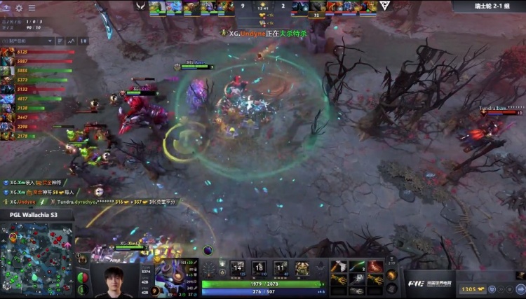 【19分钟】bzm龙骑士变龙跳刀神龙摆尾开团,XG人少被强留,龙骑士在双辅助的控制辅助下完成三杀,断了Ame小小节奏。Tundra一波将经济优势扩大到9K。