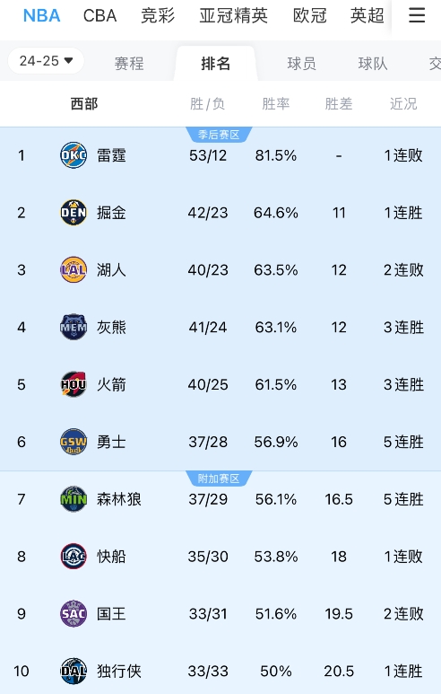 有些掉队了!快船不敌鹈鹕差勇士2个胜场差森林狼1.5个胜场
