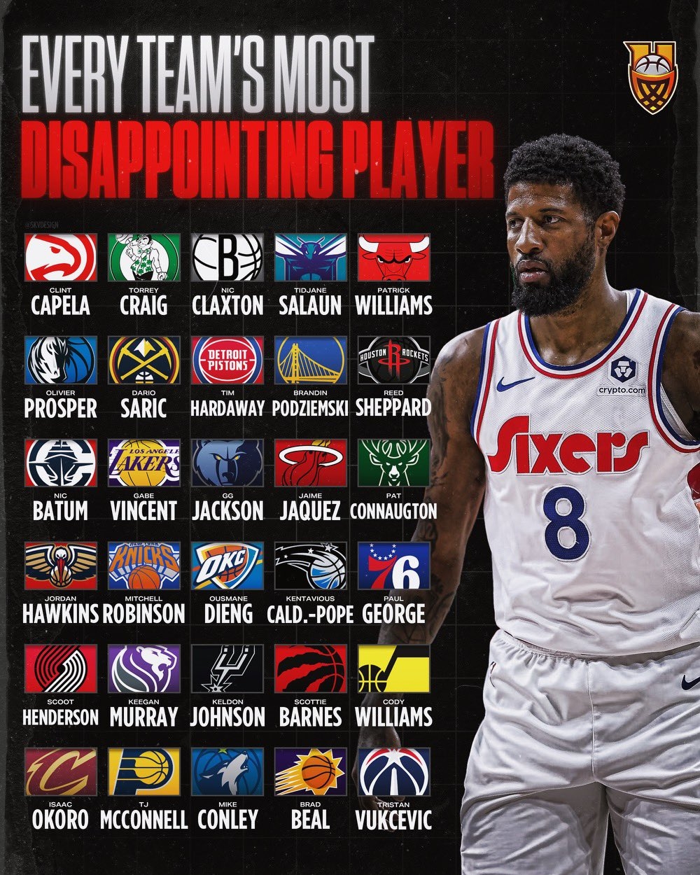 美媒评选本赛季每支球队最令人失望的球员:76人乔治火箭谢泼德