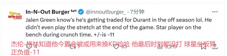 美火蜜:史上最弱2号种子用杰伦格林换KD吧&我们需要超巨