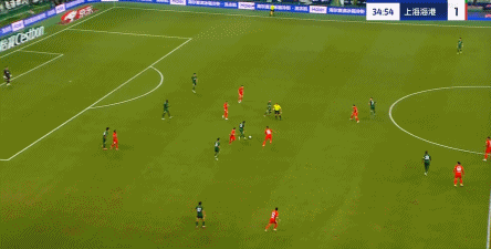 即便你可以将其看做另一个中场,但这也没有为北京国安带来更多的控制能力,上海海港依然可以打穿北京国安的中路防守,直面他们孱弱的三后卫防线: