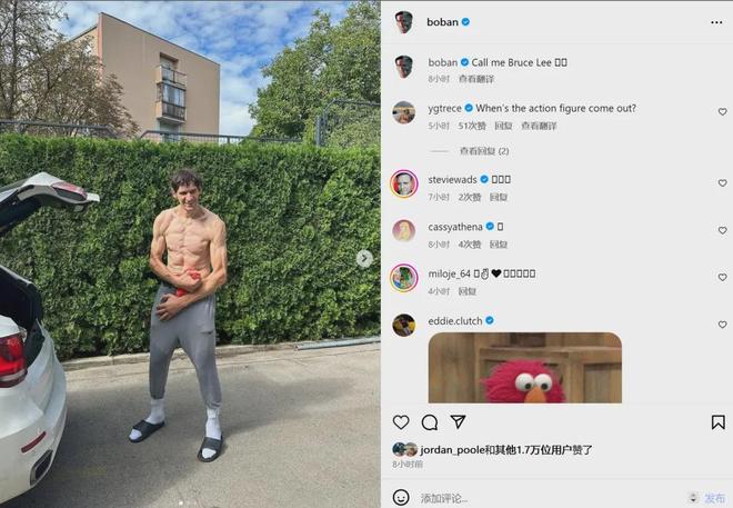 北京时间9月22日,博班-马扬诺维奇在Ins晒出自己的肌肉照,并写道:“叫我李小龙!(Call me Bruce Lee)”。乔丹-普尔、保罗-乔治等NBA球员,给这组照片点赞。尽管博班已经无球可打,但他非常自律,这肌肉让多少球星汗颜?