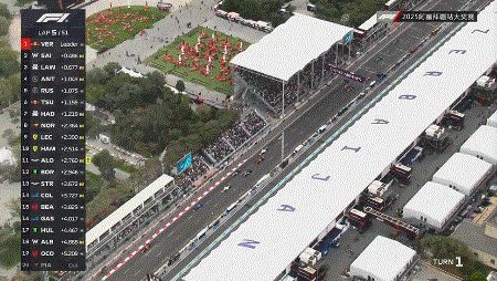 第5圈比赛重新开始,但安东内利在1号弯与队友的对抗中挤开拉塞尔,受到影响的后者被身后的角田超越,与此同时勒克莱尔对诺里斯完成了超越,随后在16号弯超越哈贾尔升至第7。