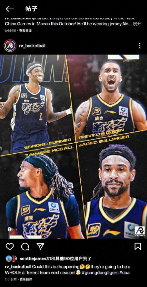 有媒体晒出广东男篮新赛季四名外援的照片,分别是萨姆纳、萨林杰、麦考尔、奎因,萨姆纳还特意点赞了。虽然有消息称广东和四川在商讨关于萨姆纳的优先续约权,但还没确定下来,萨姆纳到底来不来广东呢?如今萨姆纳点赞自己要加盟广东的消息,有点耐人寻味。