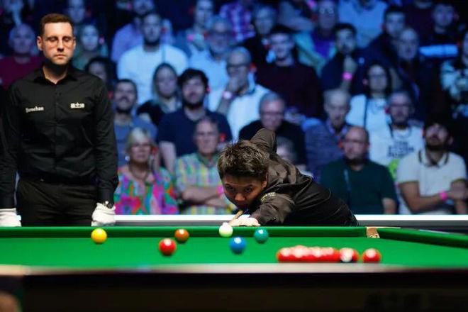 比赛前8局,周跃龙2比6落后,开局糟糕。但在随后的4局比赛,周跃龙找回手感,多次抓住艾伦失误的机会成功上手。12局结束,中国选手已经将大比分扳成5比7,赢下的5局中周跃龙打出了3次单杆50+。