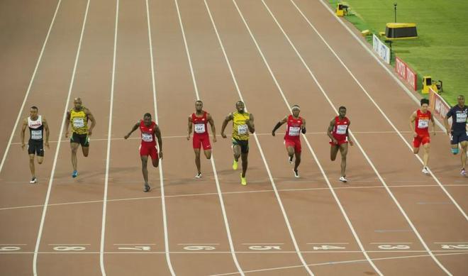 ▲2015年北京田径世锦赛,百米决赛,苏炳添与博尔特等人同场竞技。