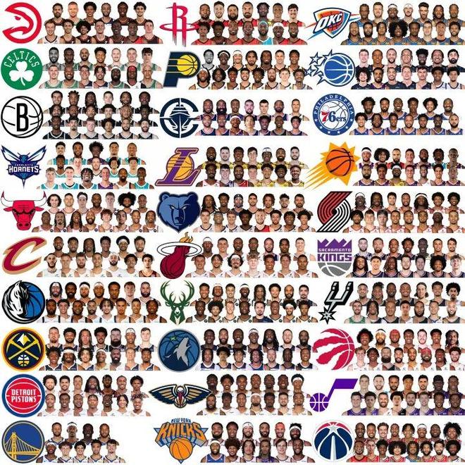 下图是截至今天为止,NBA30队的完整阵容。