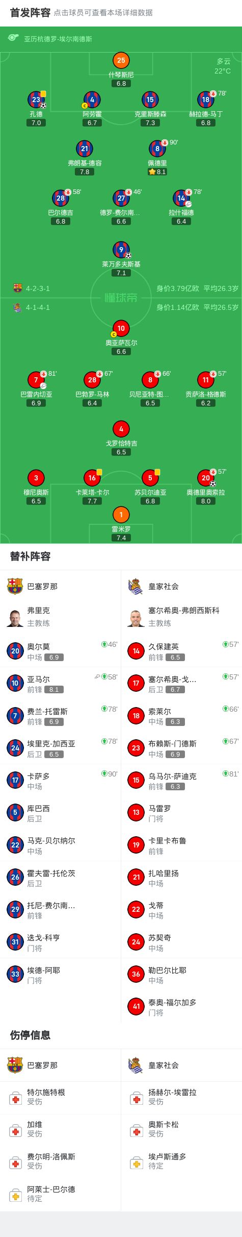 - 西甲 | 剑南春巴萨21皇社登顶西甲,莱万破门,亚马尔替补秒助攻