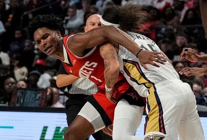 北京时间10月15日,NBA季前赛火箭险胜鹈鹕,第二节场上阿门和老六发生冲突,赛后两人拥抱和好,前NBA榜眼劝阿门冷静小心禁赛,杜兰特与特纳在线上聊了一番。