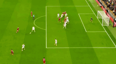 姆伯莫劲射被挡出,B费送出传中,马奎尔门前头槌得手,2-1!