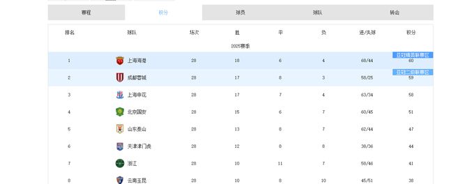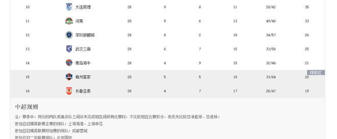 - 中超 | 中超最新积分榜:海港60分居首,梅州客家、亚泰陷降级区