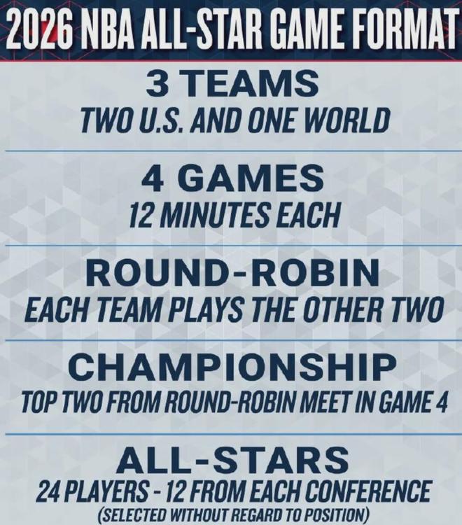 今天,NBA官宣,本赛季的NBA全明星正赛,也就是2026年全明星正赛,要启用美国队VS世界联队的全新赛制了。