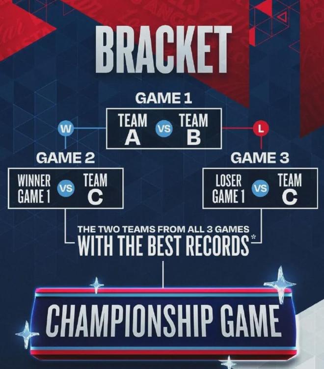 要是三队都是1胜1负,那么就砍净胜分决定晋级资格,总之就是4场对决,每场12分钟。