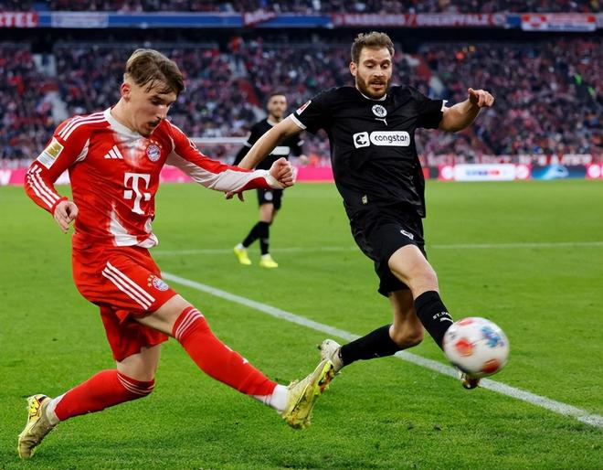 对于孔帕尼来说,他这场比赛的目标自然是三分,为此下半场回来他也早早换上了奥利塞和格纳布里,不过圣保利却踢得极其顽强,他们在安联球场摆下了铁桶阵,这让南大王的进攻频繁受阻。第59分钟,帕夫洛维奇长传,迪亚斯左路小角度推射擦着立柱偏出;第81分钟,凯恩在角球进攻当中后点近距离抽射又击中立柱。