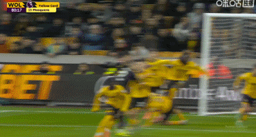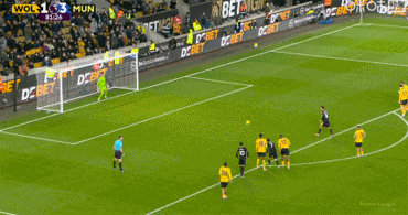 库尼亚得球后与后卫一对一,他选择横传,但力量不足而且送到布鲁诺·费尔南德斯身后。B费跌跌撞撞地转身起脚,皮球穿裆门将,在补门的后卫之前弹入网窝。曼联1-0领先狼队。狼队球迷怒不可遏,高唱:「你们根本不配穿上这件球衣!」