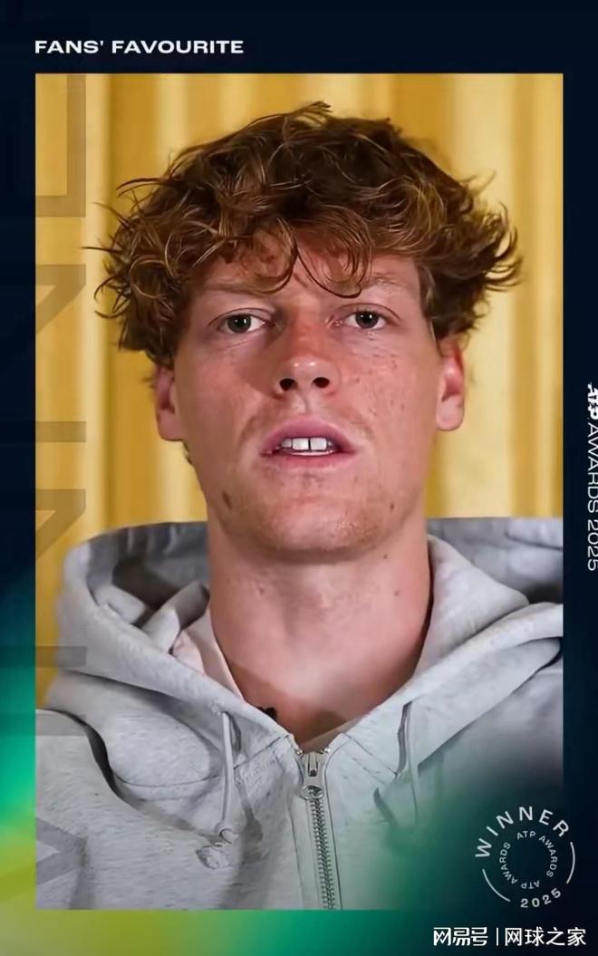 辛纳在获奖视频中向球迷表达了感谢:“能够成为年终世界第一,我非常骄傲,我要感谢很多人,我的团队、家人、朋友、球迷们,谢谢大家的支持和帮助。”