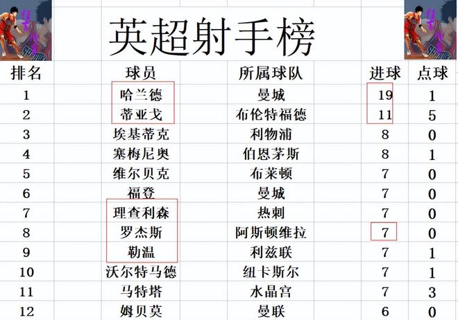 射手榜方面,哈兰德19球高居榜首,蒂亚戈11球位列第2。埃基蒂克,塞梅尼奥8球并列第3。罗杰斯今天梅开二度后,追上福登,理查利森,勒温等人7球刚好挤入前十。姆贝莫缺阵,还是差前十1球。