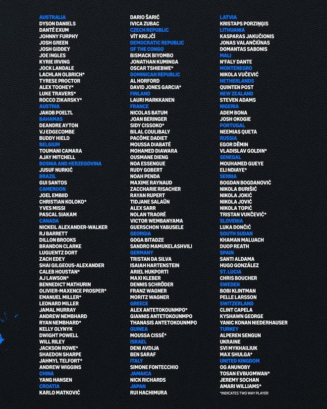 12月21日为世界篮球日,NBA官方制作海报分享NBA国际球员分布情况,并统计了一份完整名单。