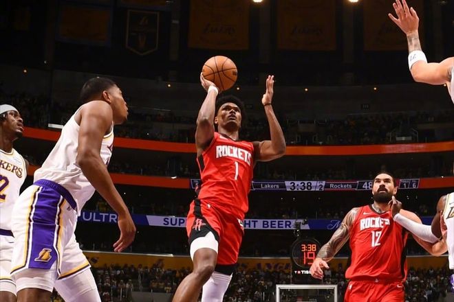 湖人进攻端找不到手感,防守端也是形同虚设,火箭队的突破和散步没区别,外线各种大空位。末节,东契奇只打了3分钟就下场,詹姆斯也是只打了小半节。火湖大战,一场备受关注的比赛,就这么草草收场。火箭队那边,阿门高效得到26分7篮板5助攻,杜兰特25分9助攻4篮板没怎么出汗,首发五人更是全部得分上双。湖人那边,里夫斯受伤前表现称得上不错,东契奇25分7助攻5篮板,在这场关注度之高的比赛中,只能用低迷来形容。而詹姆斯18分5助攻2篮板,年龄上来后确实是有心无力。可以这么说,湖人队的防守不改变,本赛季,还是没戏。