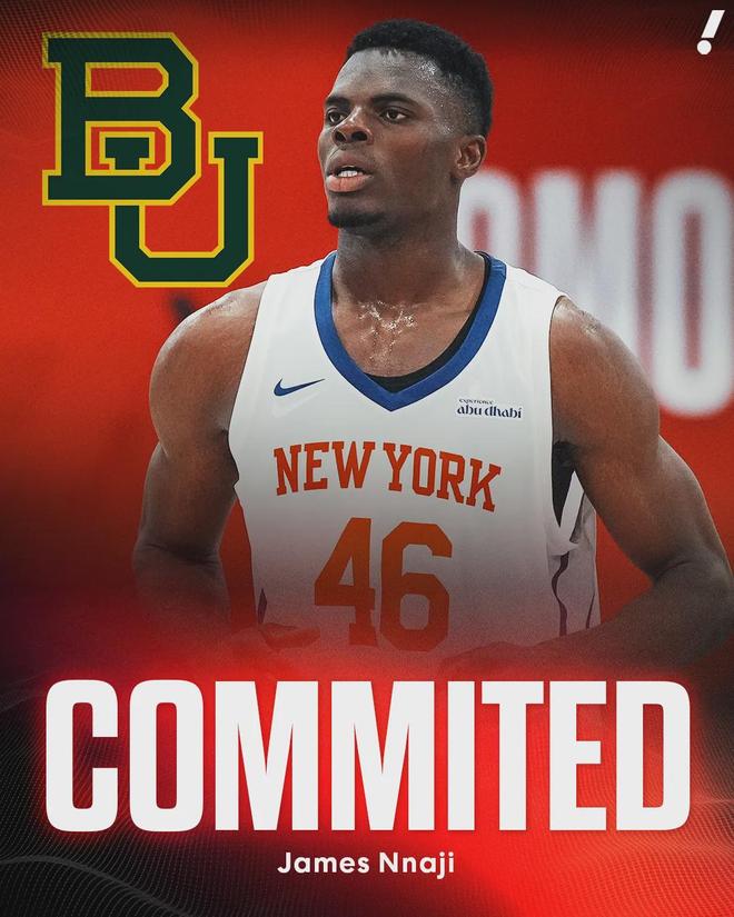 今天更是倒反天罡,一个名为詹姆斯·纳吉的球员加盟贝勒大学,已经完成注册。