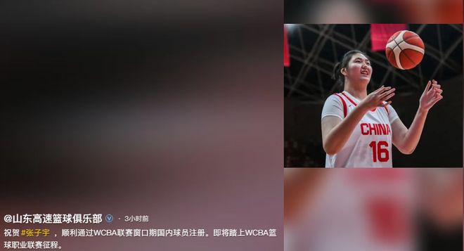 山东高速官宣:张子宇通过窗口期注册最快1月4日迎WCBA首秀