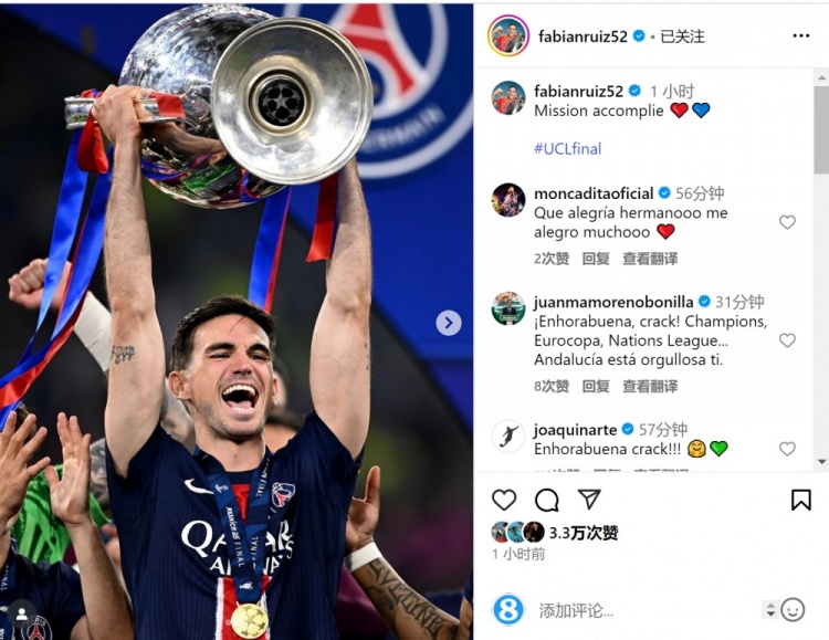 7月20日宣 巴黎中场法比安-鲁伊斯在本周六结婚,多名巴黎队友出席婚礼。法比安-鲁伊斯和他的女友罗萨-佩雷拉于本周六在西班牙塞维利亚举行婚礼,据悉巴黎球员索莱尔、登贝莱、